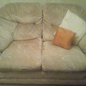 2 x two seater sofas & footstool neutral colour fabric very good condition ready for collection