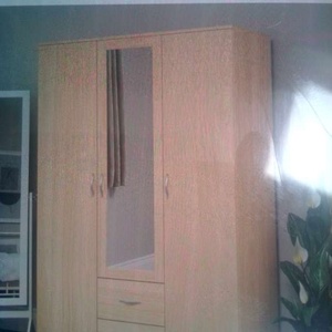 Large 3 door wardrobe. Needs repairs. Flat packed. 3 drawers but only got 2. Also matching bedside tables and tall 5 drawer unit. Not brilliant condition but perfectly usable. Wardrobe is SIMILAR to pic.