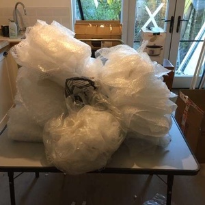 Hi I have recently moved and have saved all my bubble wrap for someone to resuse! there are 3 large bags of bubble wrap and the sizes range from large sheets to smallish pieces. All assorted sizes. The packaging would be ideal for someone needing to send out parcels for eg via Ebay or from their small business, also for moving home and wrapping up fragile items.