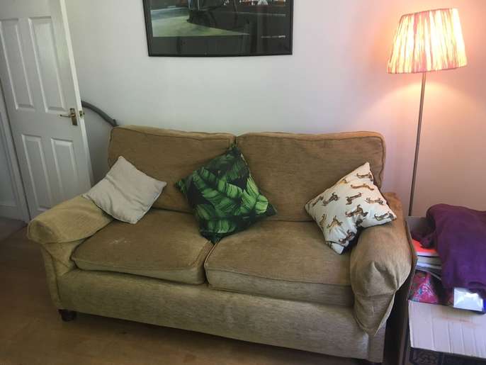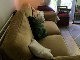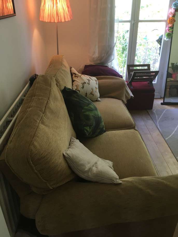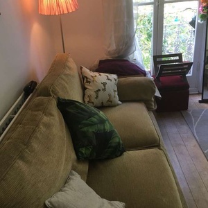 FREE to collect Large 2-seater sofa VERY comfortable and in excellent condition - removable machine-washable covers - soft, corduroy fabric Giving away as we are moving up to Glasgow and it wont fit in the van! Comes from a pet and smoke-free home Must be able to collect from London SE4 - we can help you get it into a van :) Email me for further info
