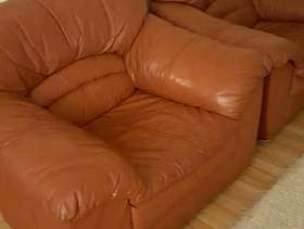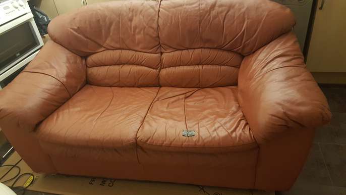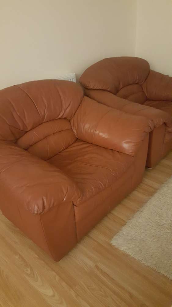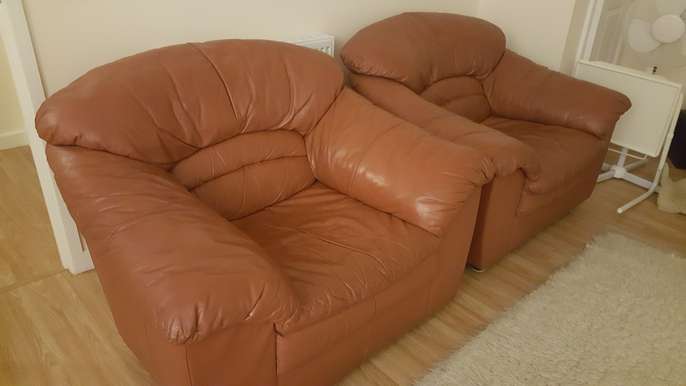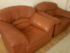 I have a DFS real leather 3 piece suite. Colour is burgundy/ dark red. 2 × armchairs and 1 × two seater. The two seater has a little hole in the seat area but I covered it in tape, also on one of the armchairs there is a tiny hole on the arm. Still useable and will do someone a good turn. I am located in Peterborough.