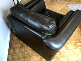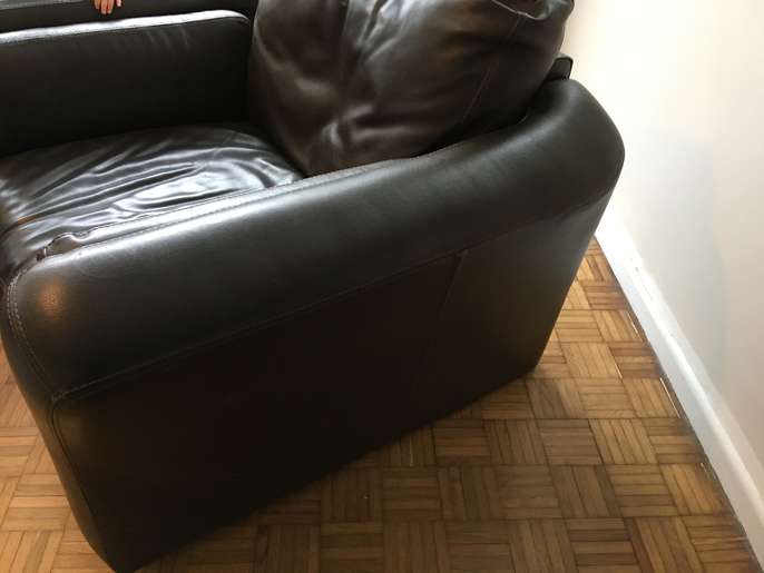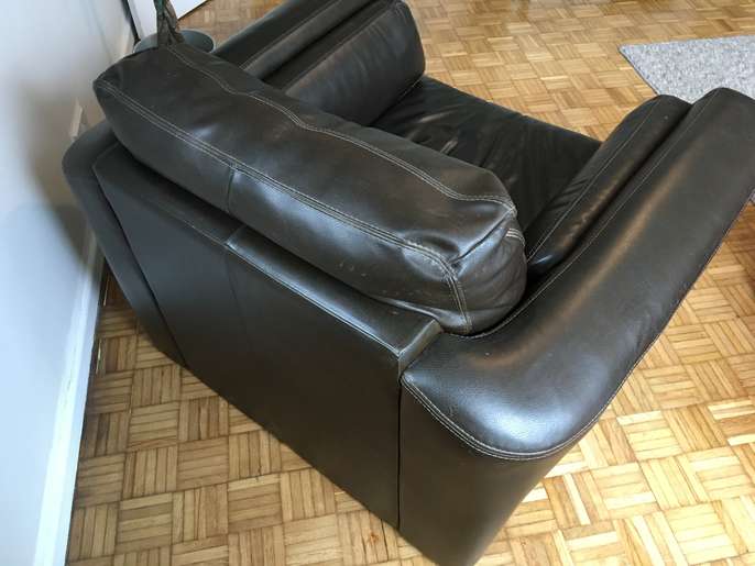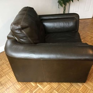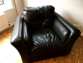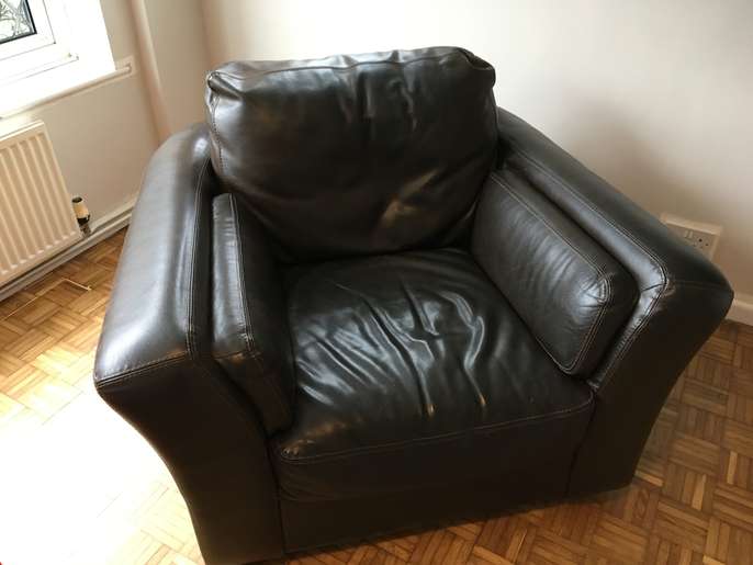 Nathan- 07740 377462 The leather sofa is generously sized and built for exceptional comfort with plump, foam cushions. Must be collected in the next day or so. we are swapping for a corner sofa which fits the new house better. Otherwise would be keeping it. Width 120cm Depth 100cm Made in Italy Smoke free home. We have a cocker spaniel but he has his own bed!