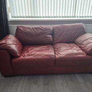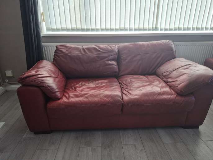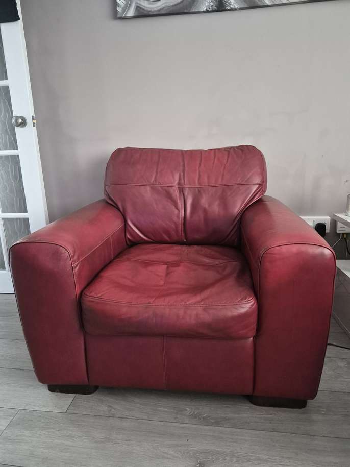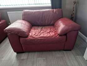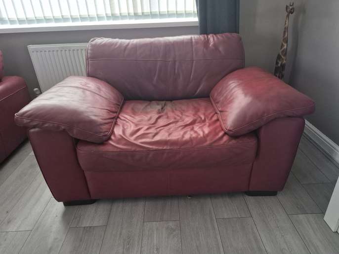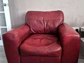 FREE Red leather sofa, snug + chair, used condition, collection only. Need gone asap