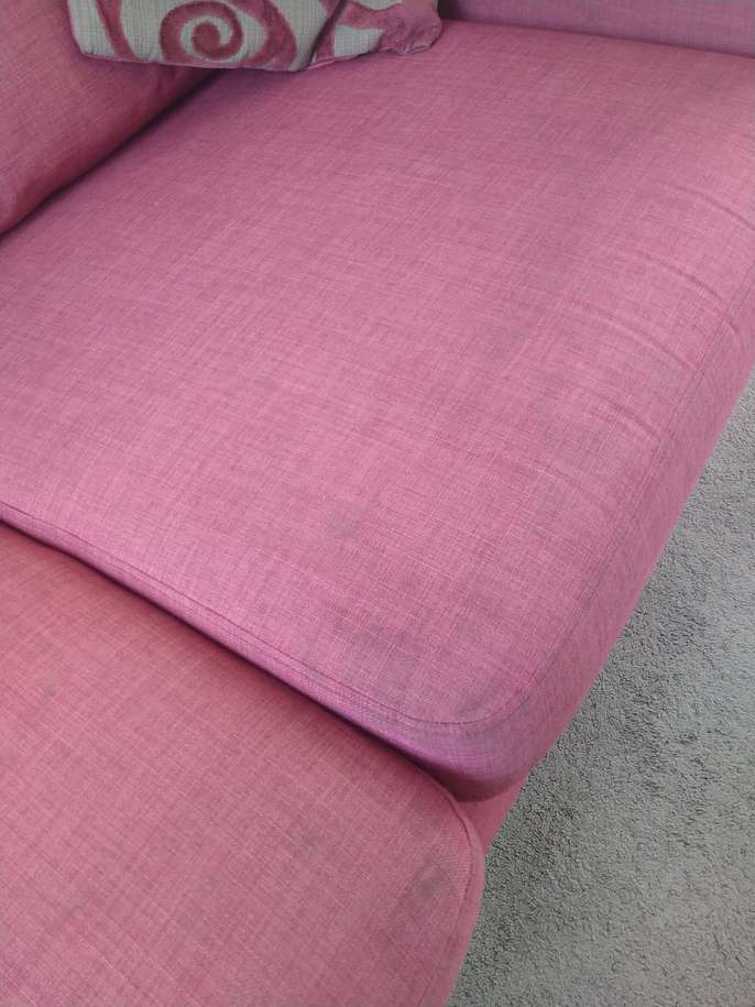 Free Pink 3 Seater Sofa, from DFS, measures 188cm width, 84cm height, 90cm depth. Well loved, faded in places and could do with a clean, but cushions still plump and comfortable and springs are fine. Free to collect this weekend from Beckenham, near Elmers End. Send me a message if interested. Thanks.