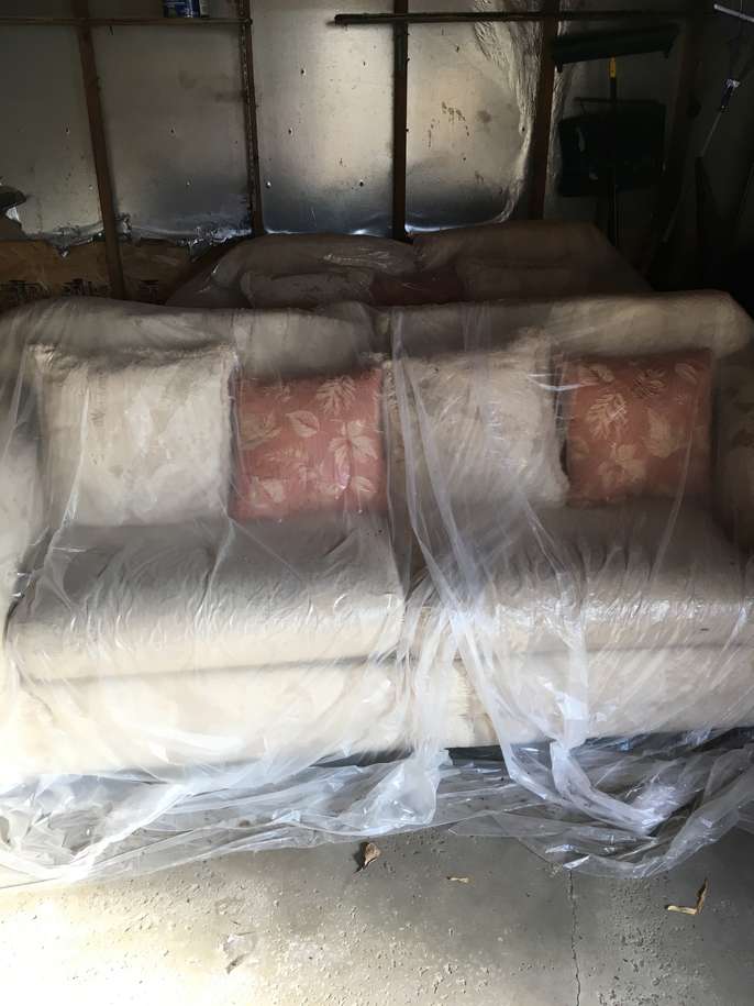 Giving away sofa & with matching love seat, cream & peach with mtaching pillows. Giving away queen size poster bed also. Located in South Shore neighborhood of Chicago.
