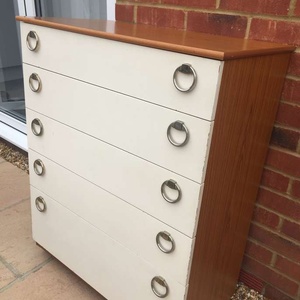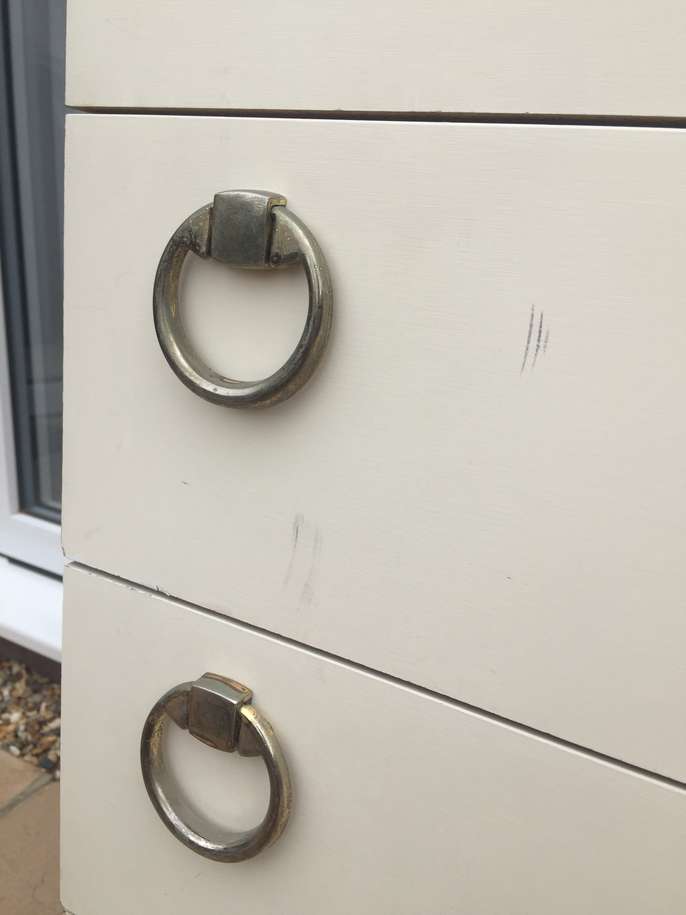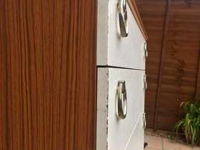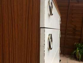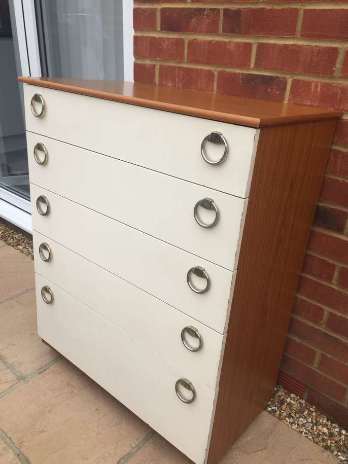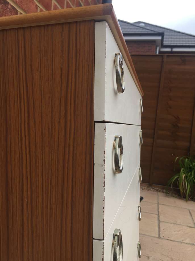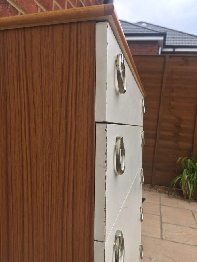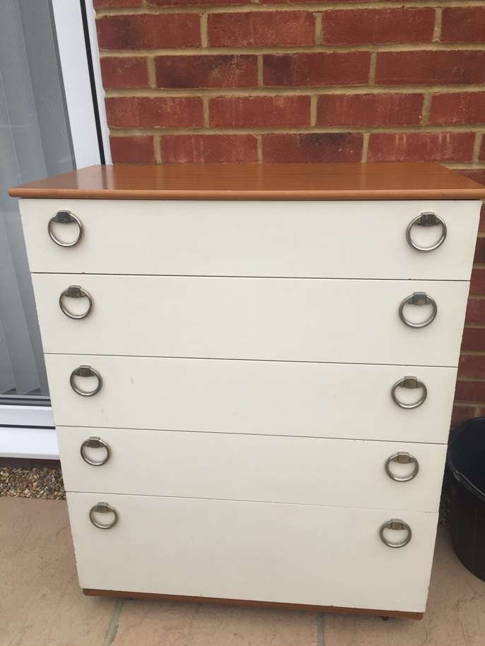 Wooden Chest of 5 drawers. Some scratches on the side but still in working condition but just needs a good clean and the handles need polishing. Free to whoever can collect ASAP from West Farnborough (Cove area) in Hampshire. If you're interested please send a message to say what day and time you can collect. We will offer this to someone who can collect as soon as possible because we are clearing our home.
