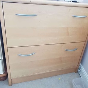 Large, solid maple wood 2 drawer filing cabinet by Peter Green. Approx 2.5-3ft wide by 1.5ft deep. Ideal for home/office or can also be used as a chest of drawers. Quality piece of furniture. Need space, free to collector before 9th July(will need at least two people as very heavy!)