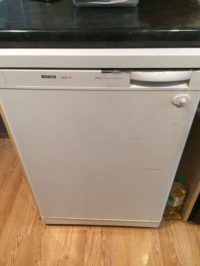 Freestanding Refrigerator, Bosch, white. Is a perfectly functioning fridge. Very good size! Ideal back up fridge in a garage? Has child lock attached! H - 85cm W - 55cm D - 58cm