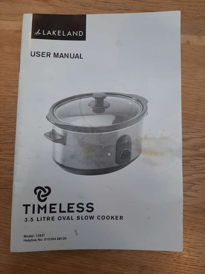 Fully working slow cooker This item is in Ashtead GB All the details 3.5 litres Lakeland slow cooker, free to a good home. Instructions included. Category Home & Garden Request This Item Ask a Question Post Message