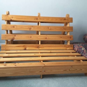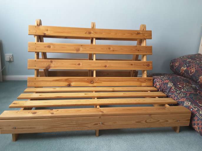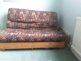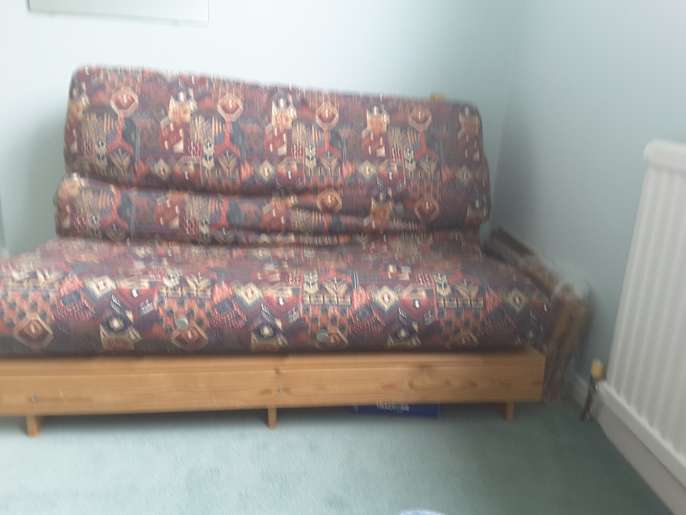 Useful as sofa or extend for small double bed...patterned mattress one side plain on reverse but faded due to dye to being in the sun