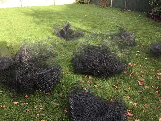 5 piece of assorted sizes, 3 very large 2 smaller garden net. Suitable for protecting crops from birds or animals. The net is made of plastic and is springy. They are free and available for collection from Sutton SM2 by the successful bidder. Collection should be within 3 days of the successful bidder being notified. The nets are in a large bag and I would suggest a car is needed for collection.