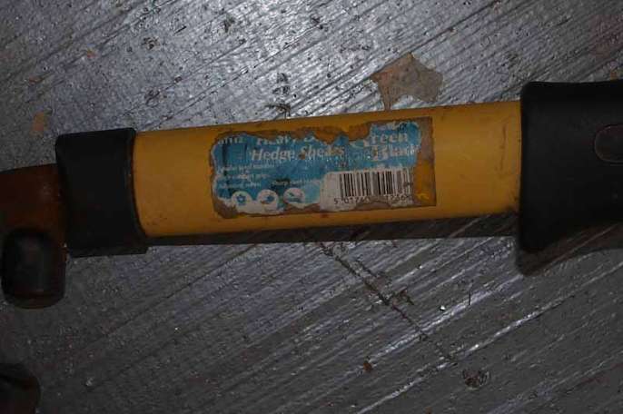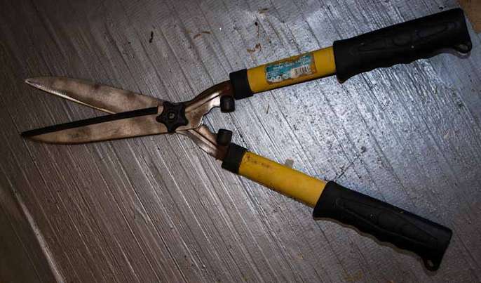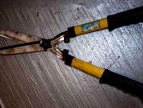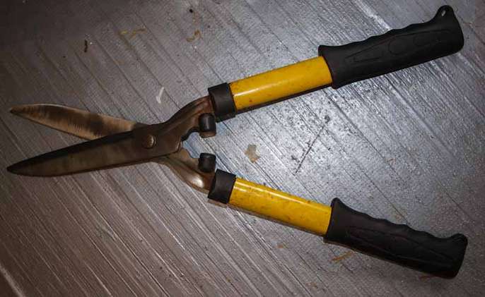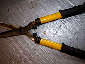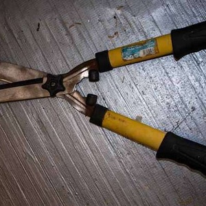 Heavy duty, by Green Blade, with adjustable pivot friction. Can be easily unscrewed fully to separate the blades for cleaning/sharpening. 20" blades