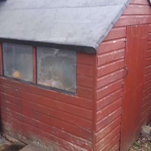 Small shed. Approx 6 foot by 8 3 perspex windows on each side. Not sure of condition. If you would like it, you will need to dismantle it and take it on Fri 10th or Sat 11th May. You can come and check it out before though!
