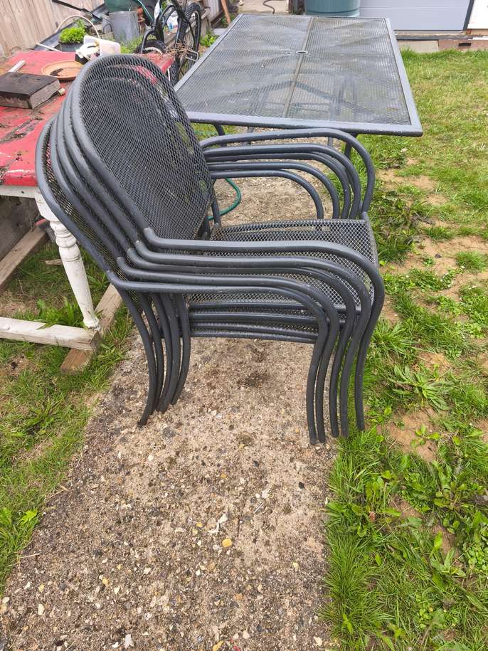 Garden table and chairs This item is in Goring-by-Sea GB All the details Garden table and six chairs with cushions, table is 170cm x 90cm Time Remaining This listing has finished Category Furniture Post Message