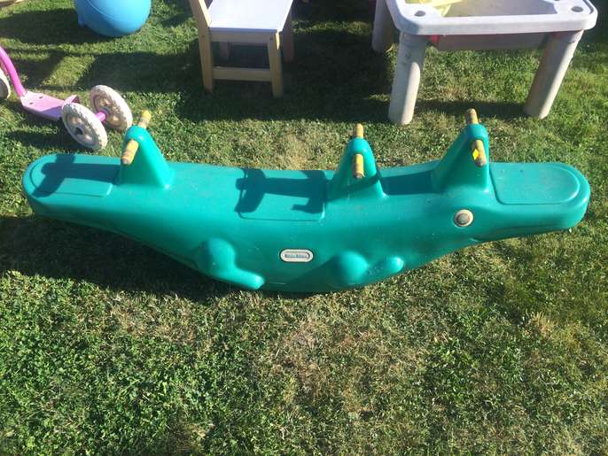 Clearing out our garden toys: barbie scooter, little tikes crocodile seesaw, wooden chair, sand and water tray with toys, red trailor, blue space hopper and spare trampoline inner to fit inside frame. Please feel free to ask questions. Ring 07514 480272 or email victoria@cattermole.org.uk. Thanks!