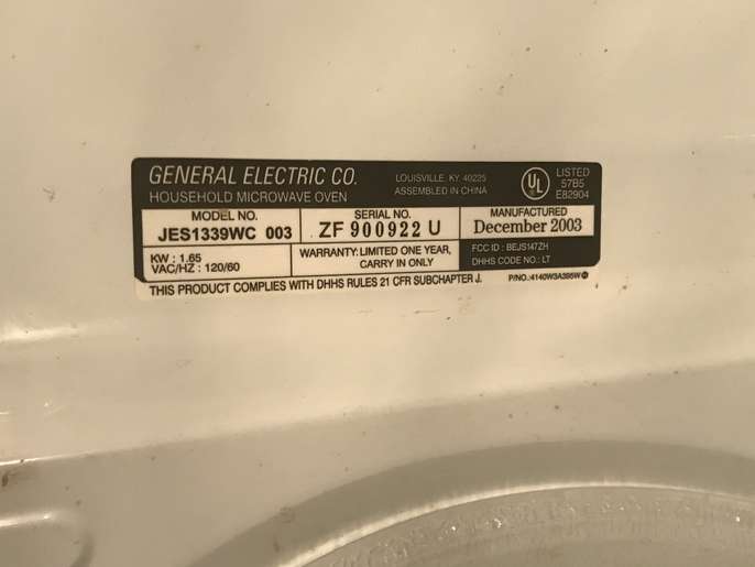 GE Countertop Microwave model JES1339WC In very good condition, a few cosmetic dents on the top. 22 inches wide x 13 inches tall by 16 inches deep