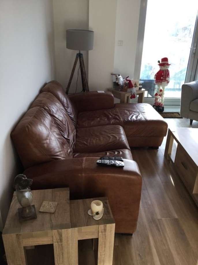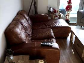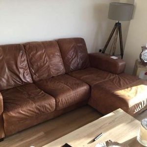 Large brown leather sofa bought from SCS a couple years ago for £1,350. Kept in good condition. There is inevitable wear and tear (small scratches, marks) but the sofa in general has been kept and maintained well.
