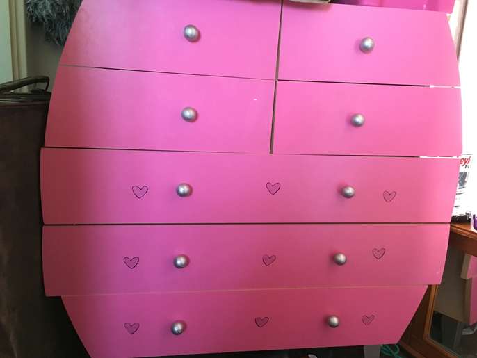 Girls matching pink wardrobe and drawer set