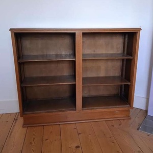 Wooden/laminate glass-fronted small cabinet - 1m wide by 80cm high by 28cm deep. Glass is currently removed for safe-keeping but very simple to re-insert. Two small sliding panes per side of the cabinet. Collect from Steyning.