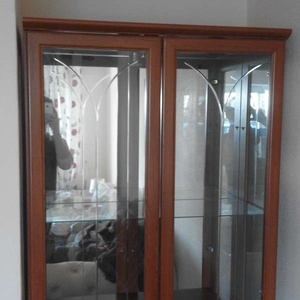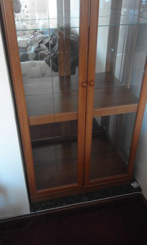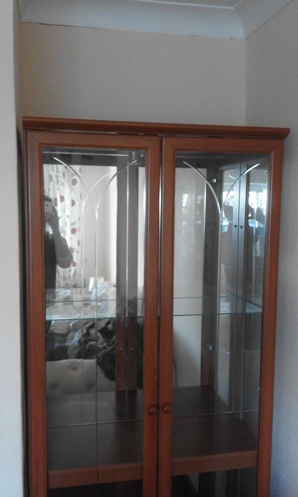 Glass Fronted Mirrored Display Cabinet with Light Nice cabinet for books/dvds or ornaments Few scratches to wood 181 x 34 x 80cm