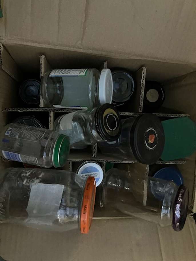 2 x Boxes of Glass Jars. Various sizes. Suitable for crafting and rustic table decorations Free - to be collected