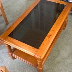 Coffee table with glass insert.... 90cm x 50cm in mid/dark wood with shelf underneath