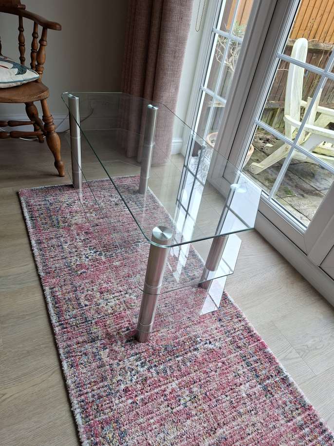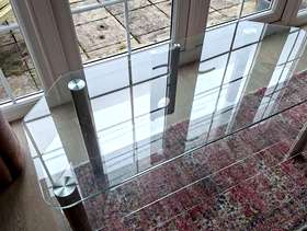 Glass TV stand This item is in Princes Risborough GB All the details Glass TV stand with three glass shelves with chrome supports Category Furniture Request This Item Ask a Question Post Message