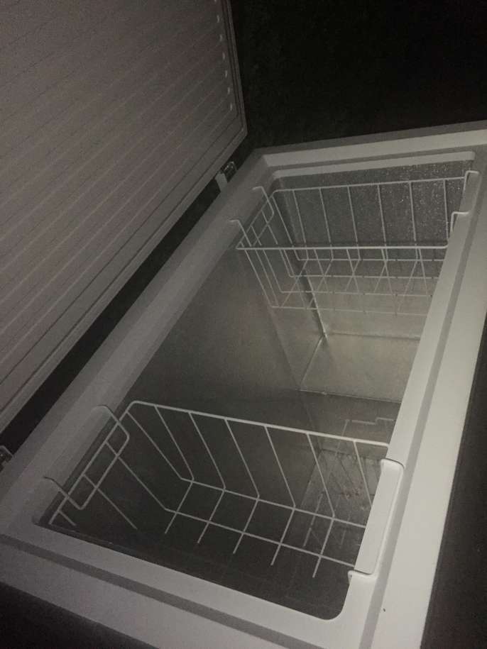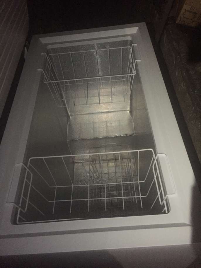 Freezer is almost new. My niece was moving and had to get rid of it. It works well. Has two inside baskets. White: height -depth 34", width 20 1/2", length 37"