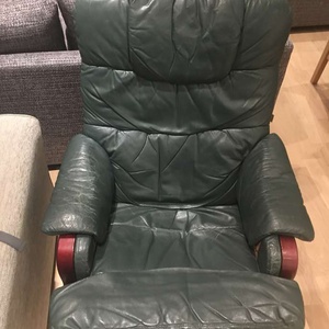 Leather green rotatable chair plus footrest available needs to be collected and carried upstairs.