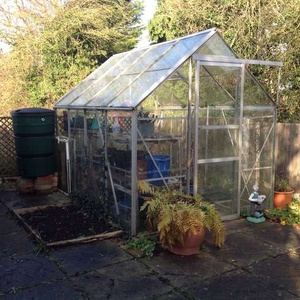 Greenhouse. Agricultural glass. 2 panes of glass missing. 1.85 m X 2.5 m. Will need to be dismantled.