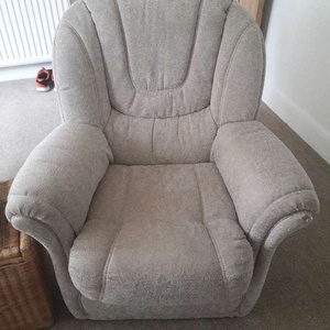 Grey armchair. Has damage on the right arm but is pretty comfy. Pick up only.