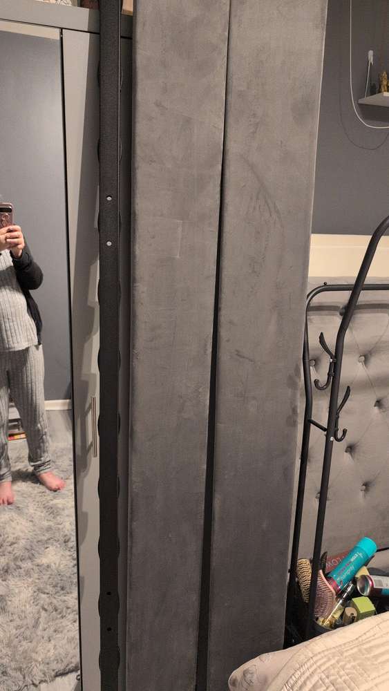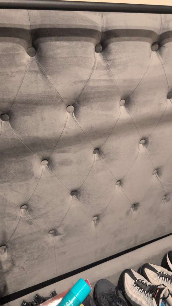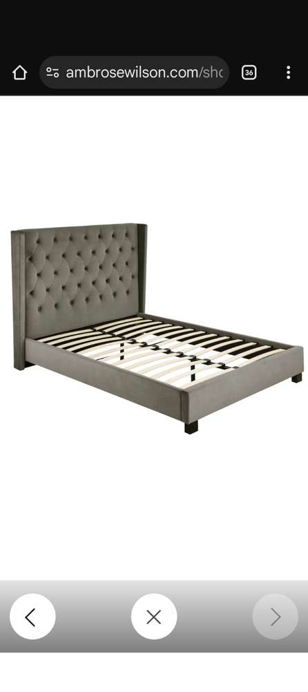 Double bed base, grey velvet headboard and side's with wooden slats, not very old only had it 6 months just a bit low for me Must be able to pick it up.