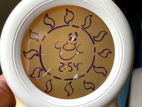 Plastic is slightly faded and screen slightly scratched, but it still works and it definitely helped our son to sleep through/know when he could get up!