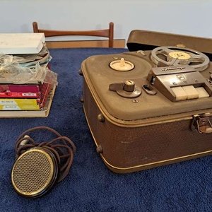 Grundig valve recorder with internal speakers, microphone and tapes. Very old - no idea if it works!