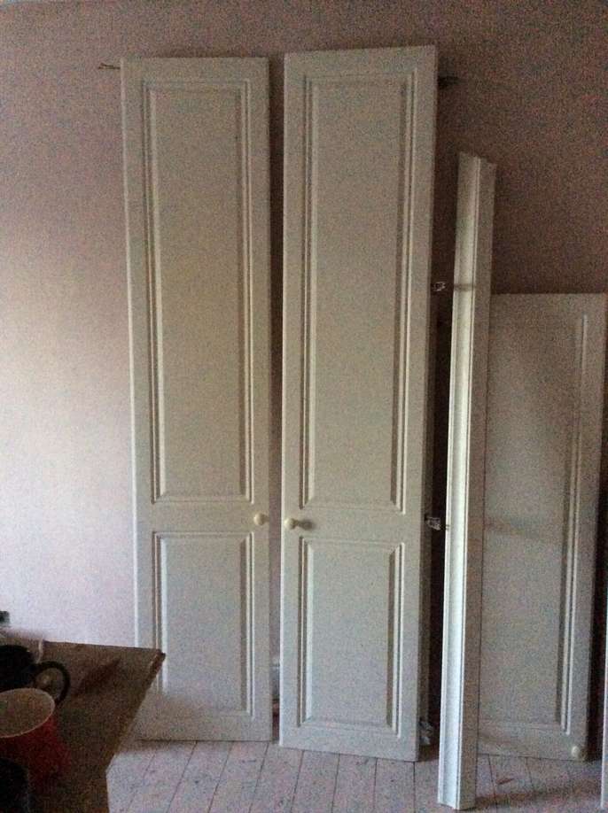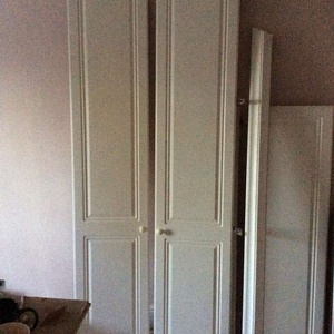 Hammonds fitted bedroom furniture, white and in good condition. Double cupboard, With shelves, full length hanging and three drawers. Already dismantled for transport
