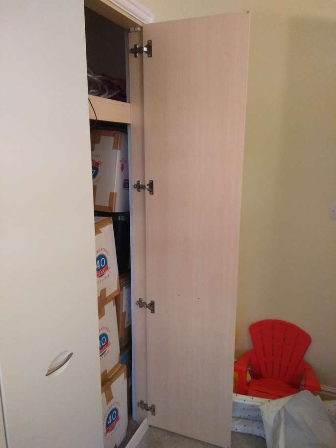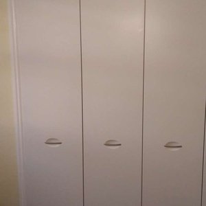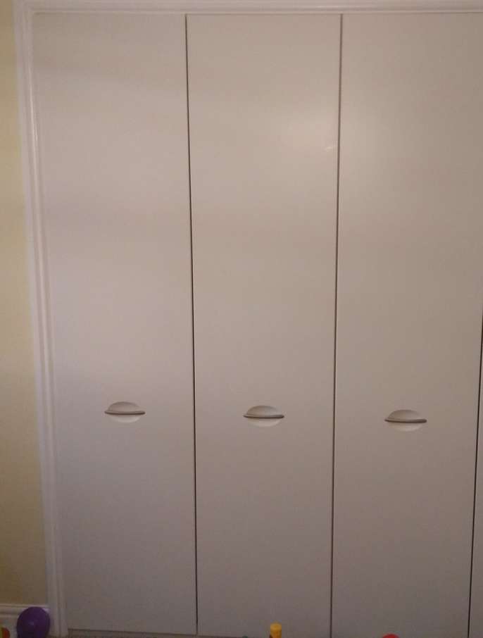 3 white Hammonds wardrobe doors with hinges. Excellent condition. Each door measures 44cm wide x 193.5cm tall Doors are detached and ready for collection.