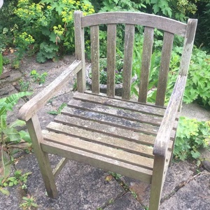 Four hard wood garden chairs. Nicely aged but very sturdy. Free to collect from Chichester