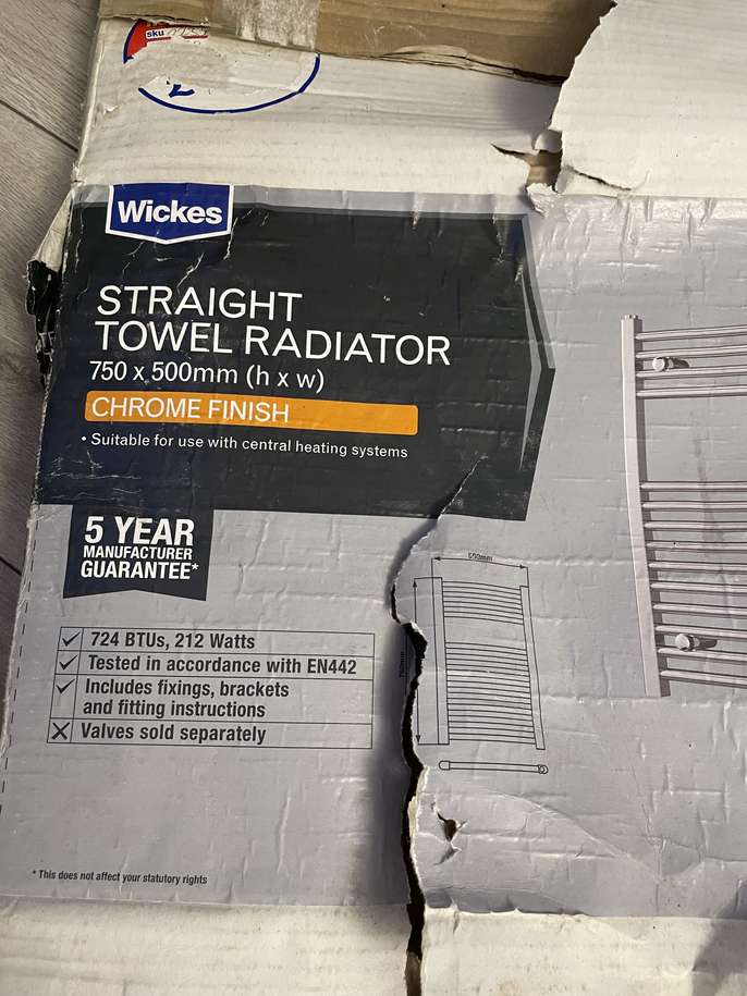 750h x 500w chrome finish straight towel radiator. Bought but never fitted. Free to collector.