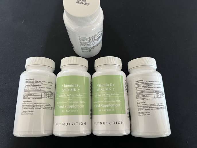 5 x 60 Hey Nutrition vitamin D3 & K2 MK-7 Suitable for vegetarians. Unopened. Expiry date 04/2027 Collection only