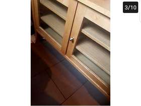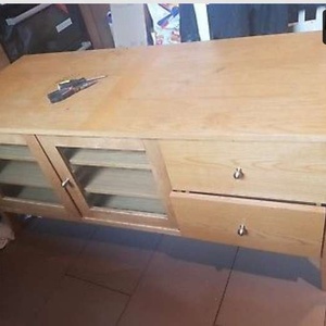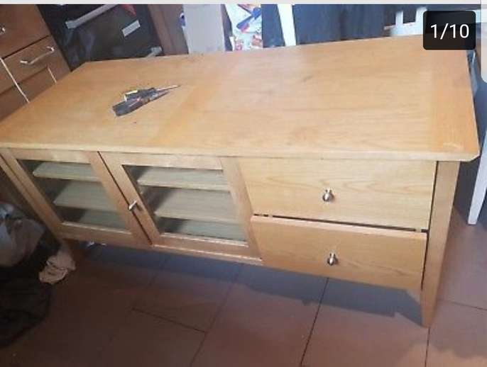 Montreal Light Oak Entertainment Unit...from HOMEBASE..... Solid Wood... Great quality Unit has 2 glass doors, 2 drawers as well as 2 long interior shelves Used but in good condition, top of unit has some marks/pen marks can easily be sanded & varnished/painted/hidden with stereo, tv etc. 1 door handle is missing can easily be replaced for a small cost Collect from NW10... nearest tube for reference Kensal Green Fully assembled and it is heavy so 2 people needed for lifting and transport needed for collection MUST COLLECT BY FRIDAY PLEASE!!