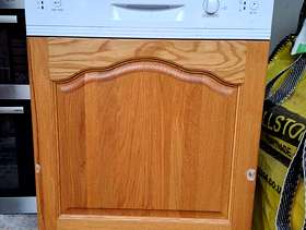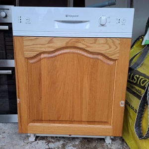 Has wooden door that can be removed or replaced. It was in a fitted kitchen and is part of a set with fridge freezer and oven - see separate posts