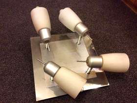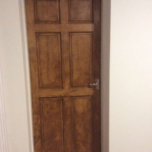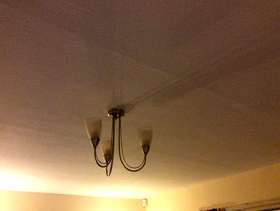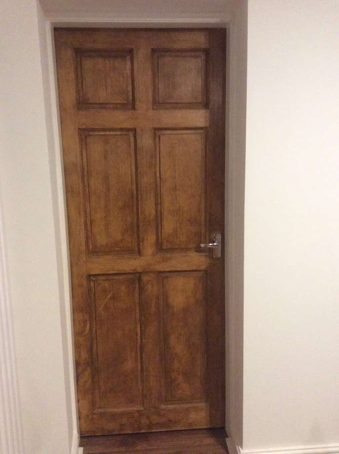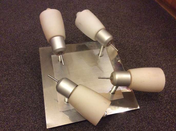 Solid wooden door, w 76cm, h 195 cm, with chrome handles. Light fitting, for living or dining room, three lights Light fitting with 4 adjustable spots. Has been used in the kitchen Curtain track, 126 cm.