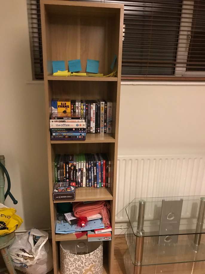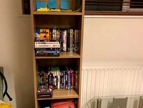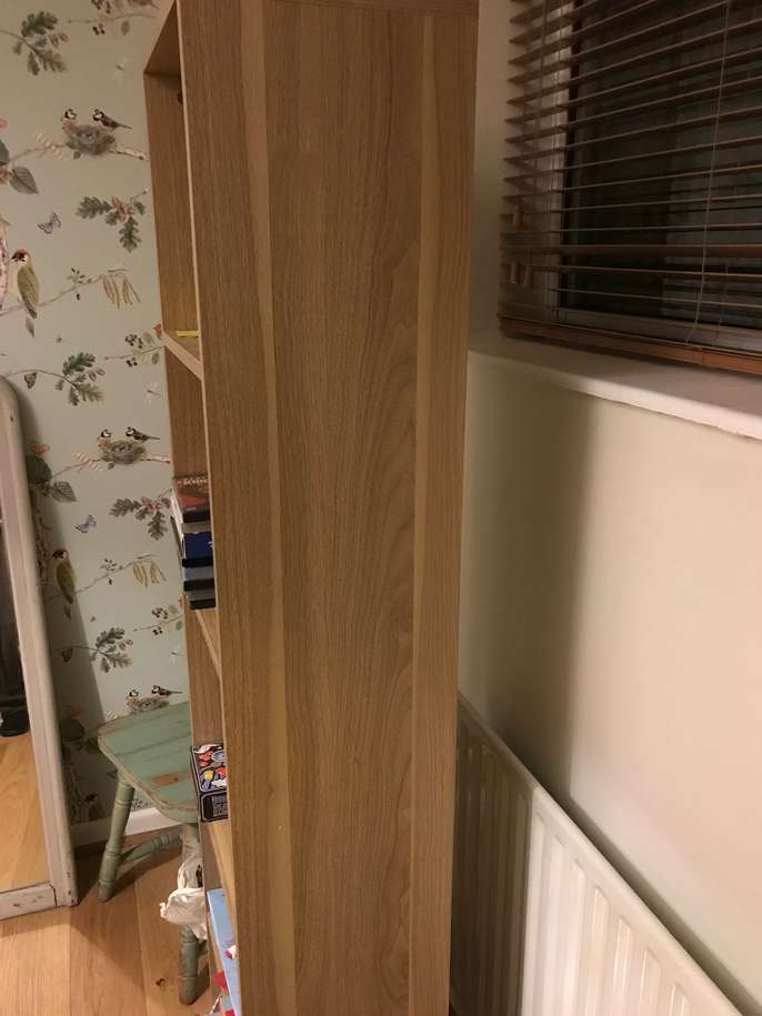 Changing some furniture around in the house so we've decided to change this bookcase. Excellent condition with five shelves, Oak coloured measuring 40cm width x 176cm height x 29cm deep.