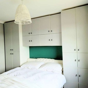 In as new condition IKEA 3 wardrobes and 7 cupboards pale grey with black handles free to collect. Wouldn't need to be completely dismantled just the two large screws at the top of each unit holding them to the wall. The bed is king size for reference,although they can be configured to suit your own room. From a smoke and pet free home You will need a large van to transport, no stairs as house is on one level