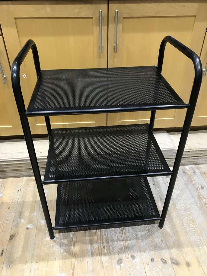 IKEA Metal floor standing shelf unit - black painted This item is in Clapham GB All the details W55 D37 H82 cm Category Furniture The Request Period For This Item Has Ended The request period for this item has ended Post Message