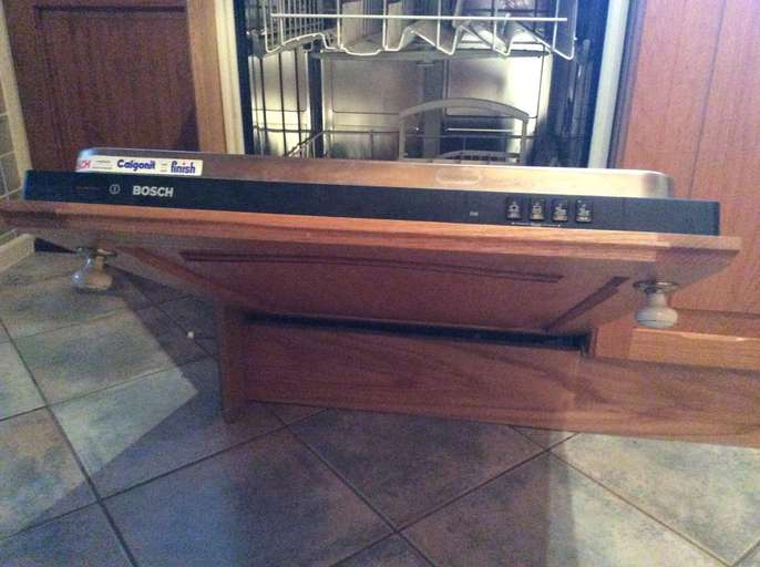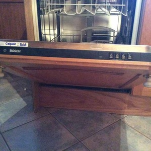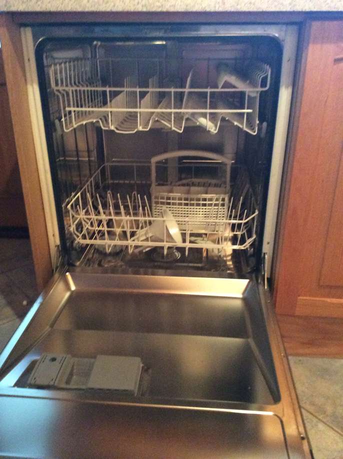 Bosch full size integrated dishwasher with oak coloured wooden door. Sound working order.