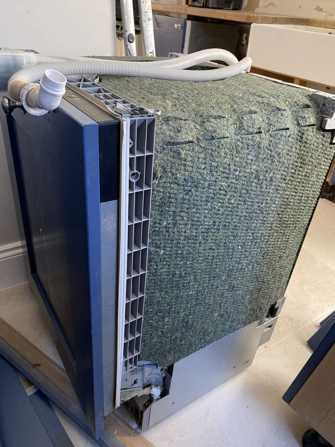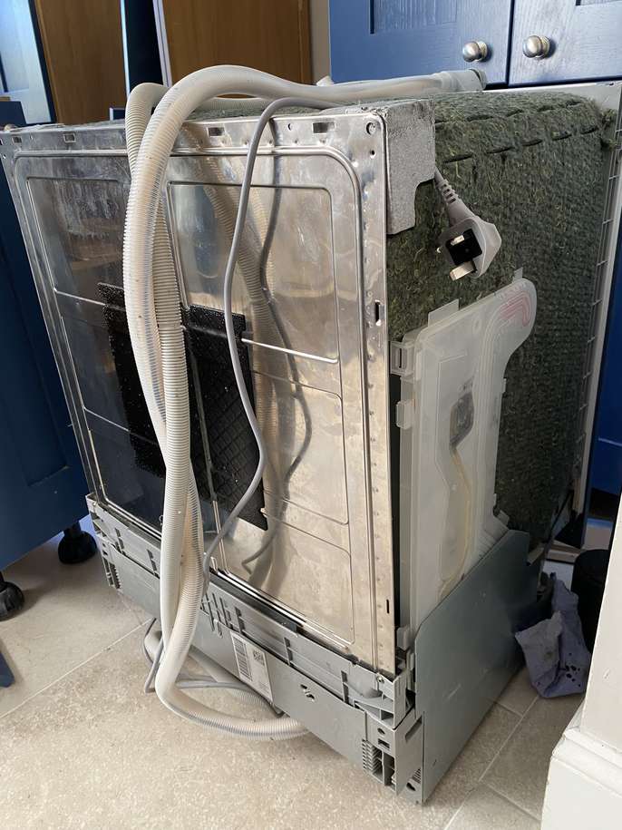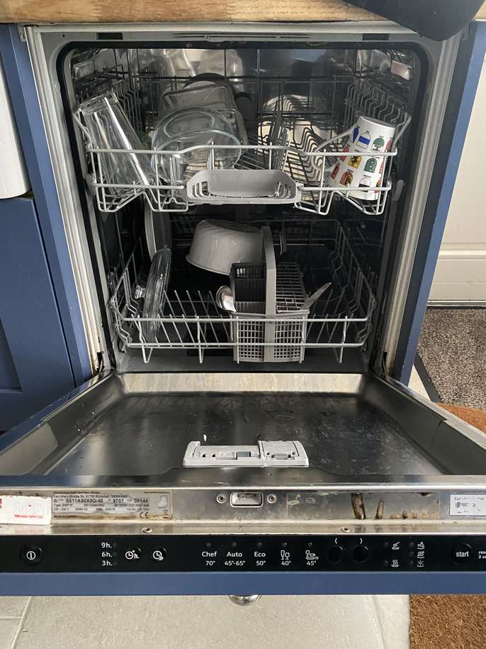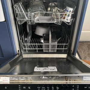 Dishwasher working perfectly. Integrated style. Has attached front panel. No hard top. We're remodelling our utility room so this one will not fit anymore. Available now. Width 60cm, height 84cm, depth 57cm