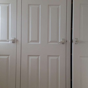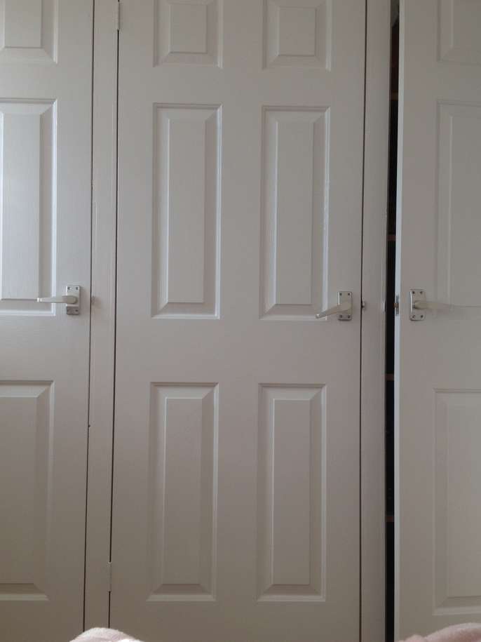 5 white gloss internal doors - used as wardrobe doors. They have not been altered in any way. 27" wide. Collection from Winslow.