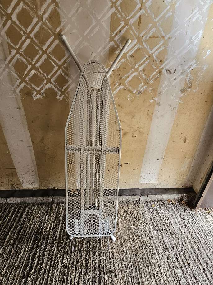 Good condition 122cm long x 37.5cm wide Leaver to change hight Pull out rack tower rest iron Just needs new covers