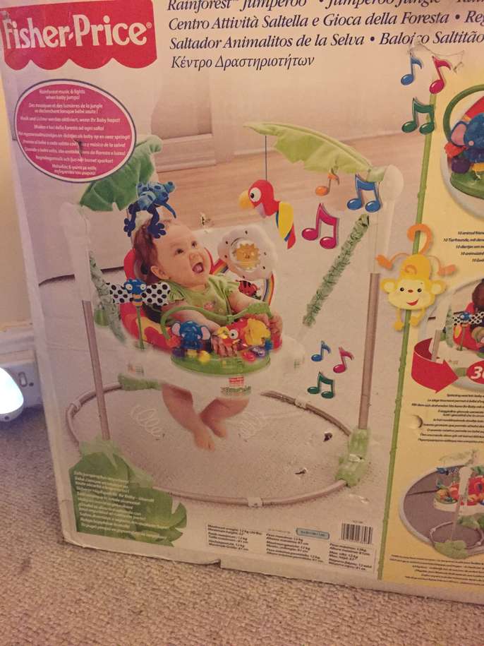 Jumperoo - in good condition apart from the seat that needs patching up after a kitten 'played' with it, which is why I am giving it away instead of selling it.